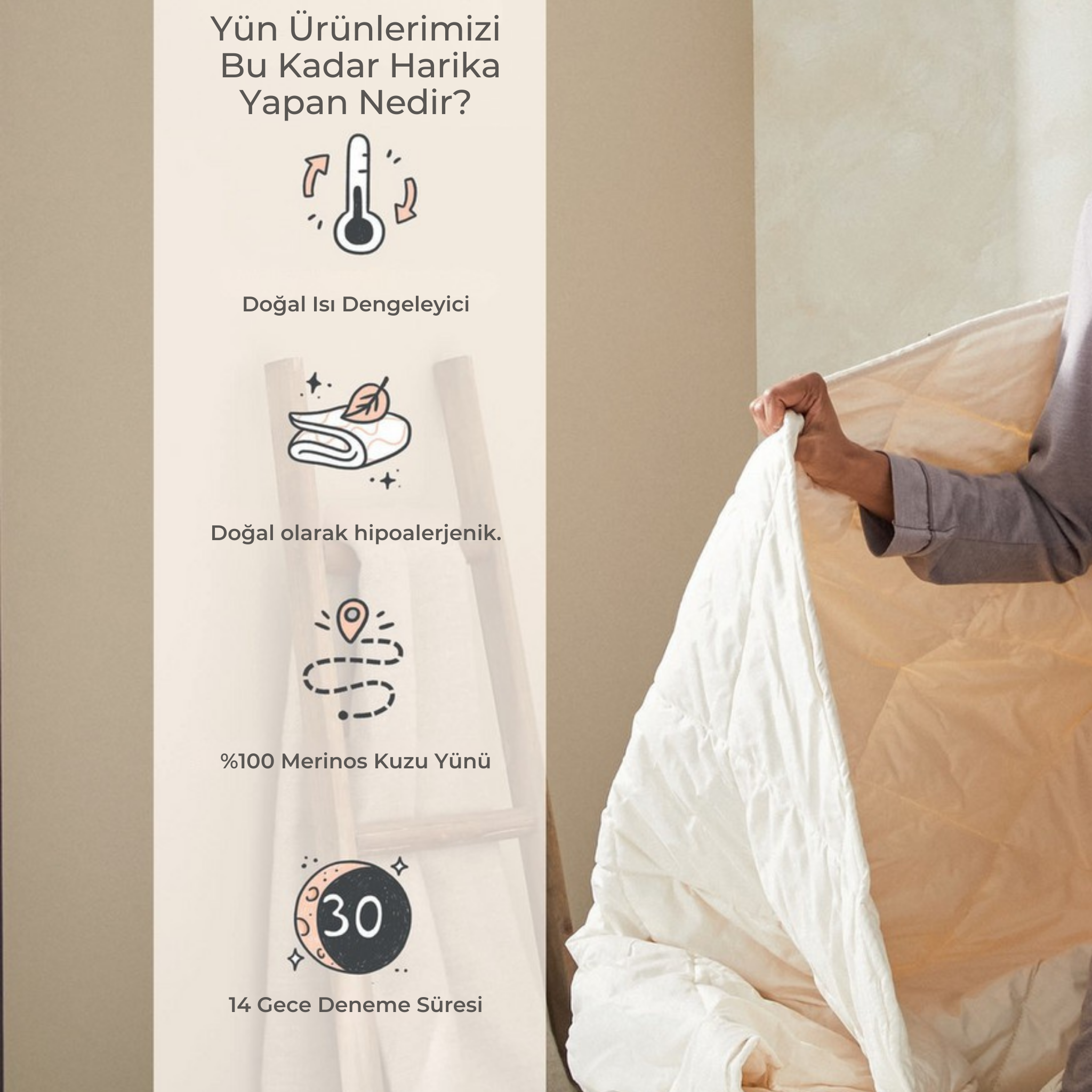 Doğal, sağlıklı ve sürdürülebilir bir uyku için Yün Evim farkını keşfedin!