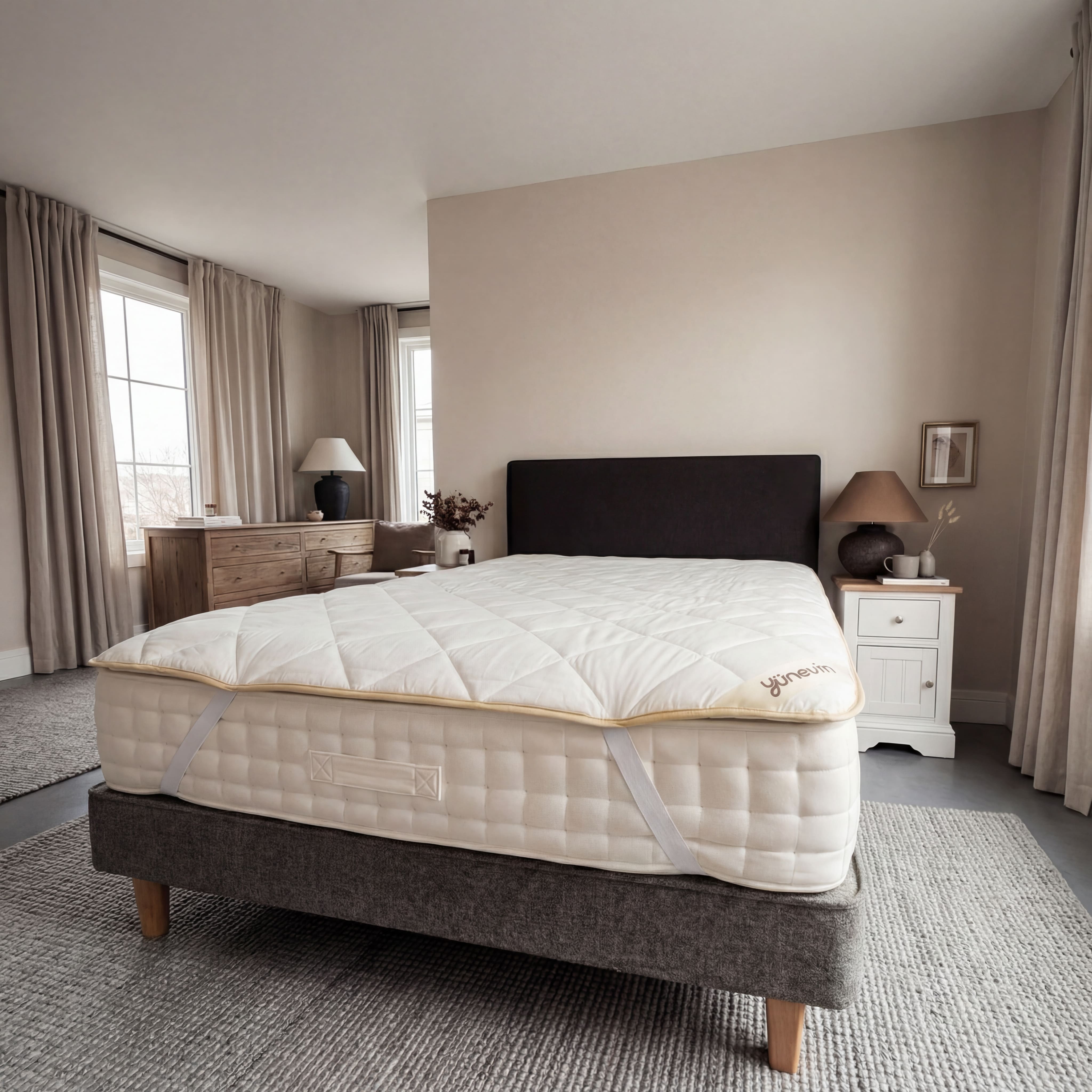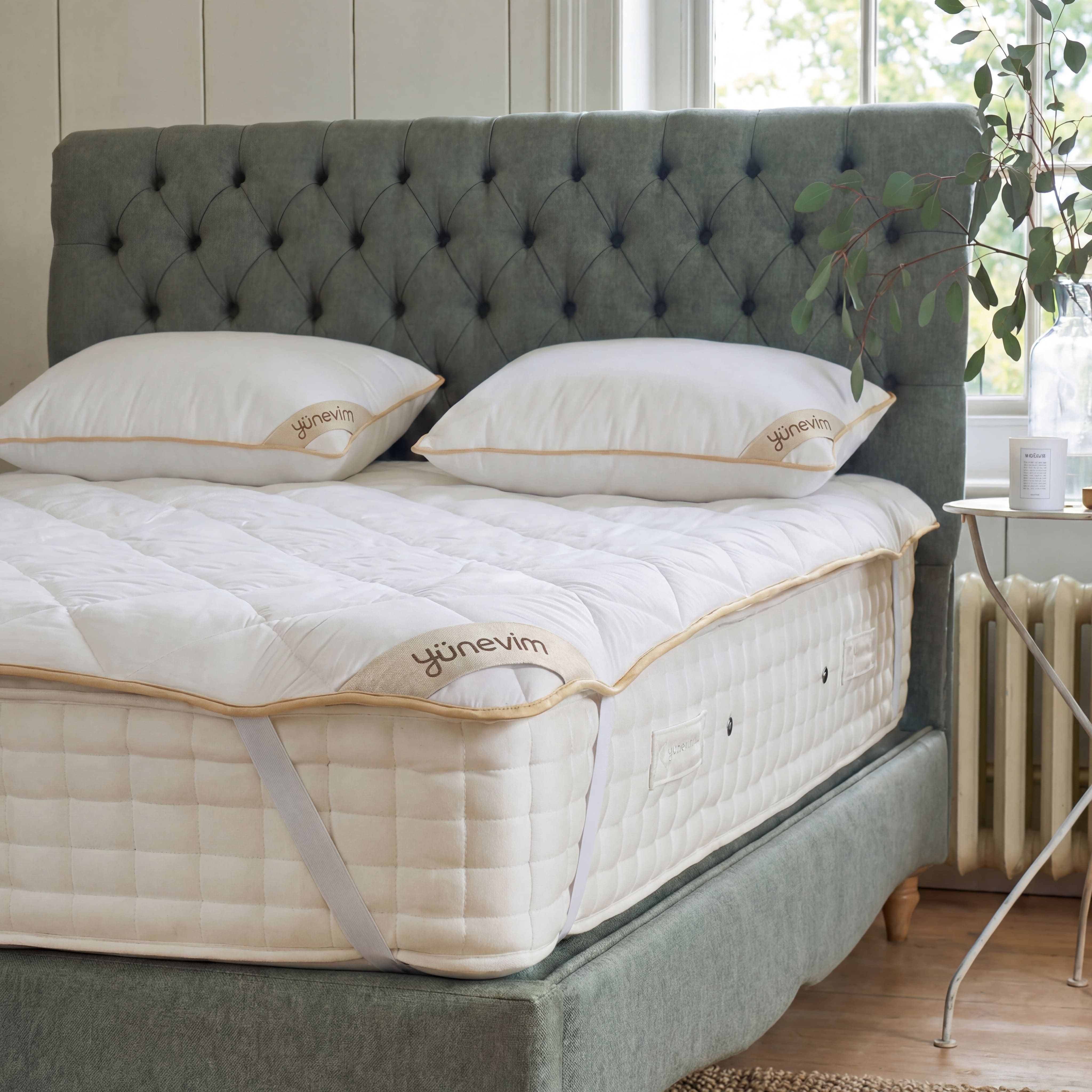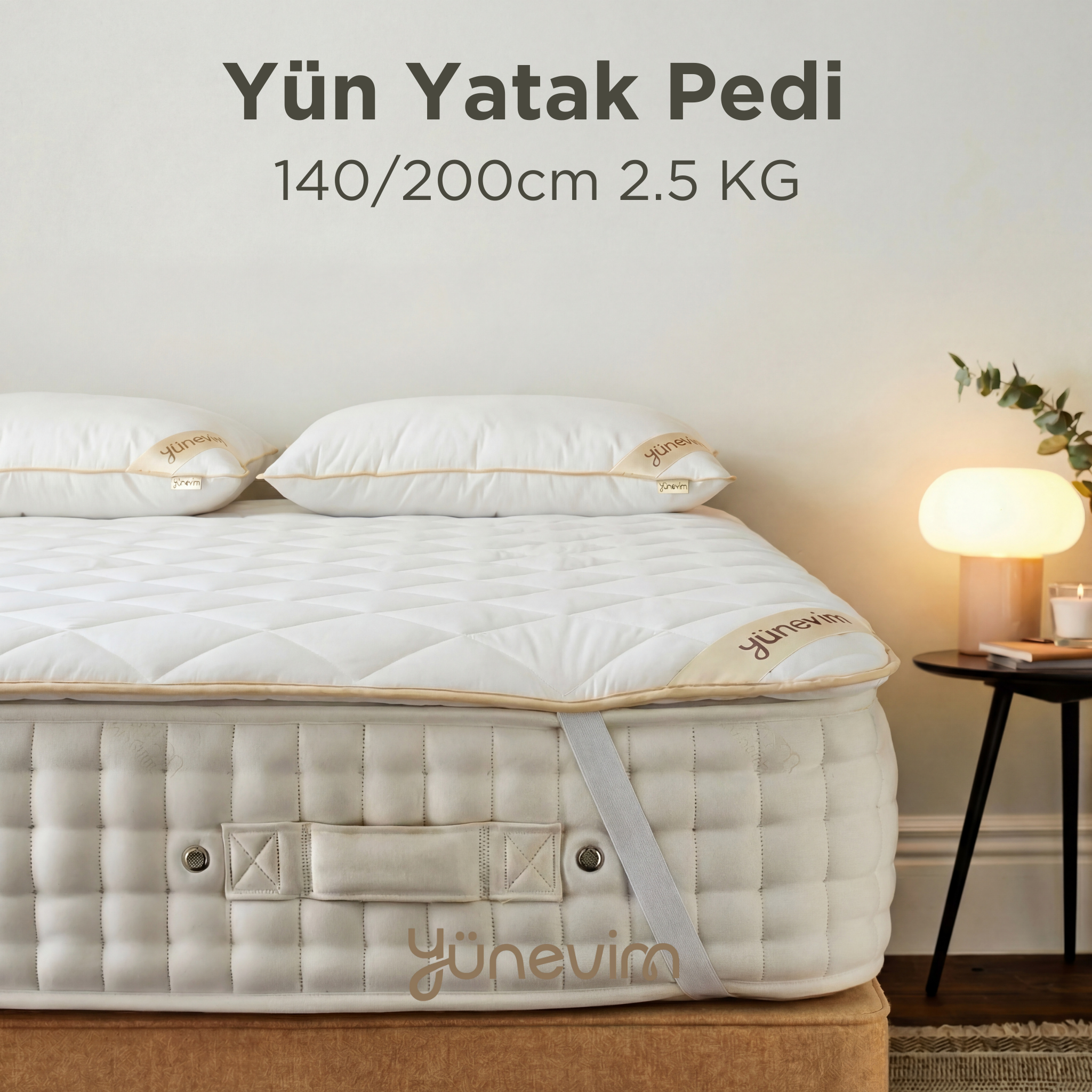 Tamemen kuzu yününden hazırlanmış olup dış kumaşı %100 pamuklu kumaştır yaz kış kullanılabilir. Kesinlikle terletmez sırt ve boyun ağrıları için faydalıdır. Tamemen el dikişidir. Doğal bir uyku deneyimi için tasarlanmıştır.