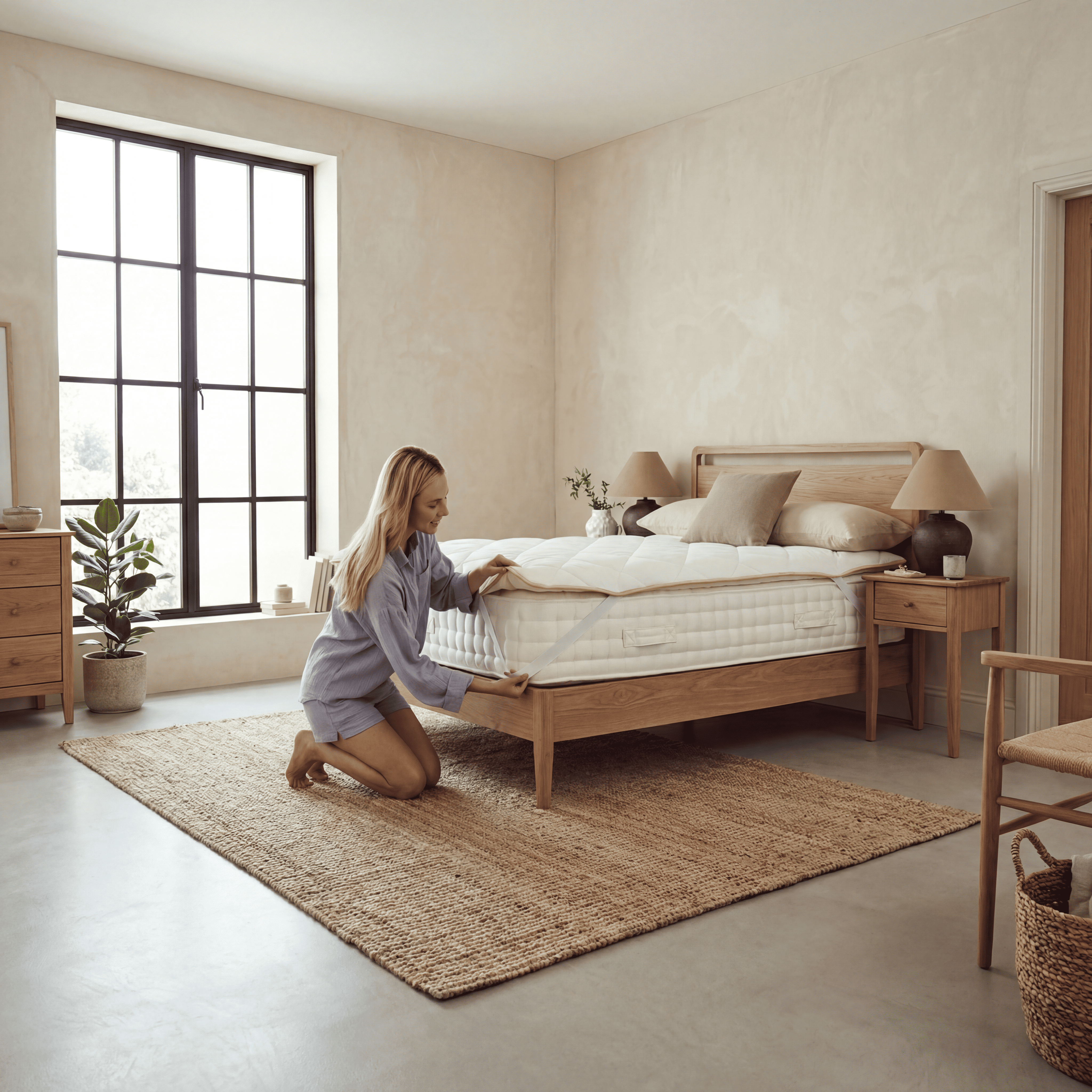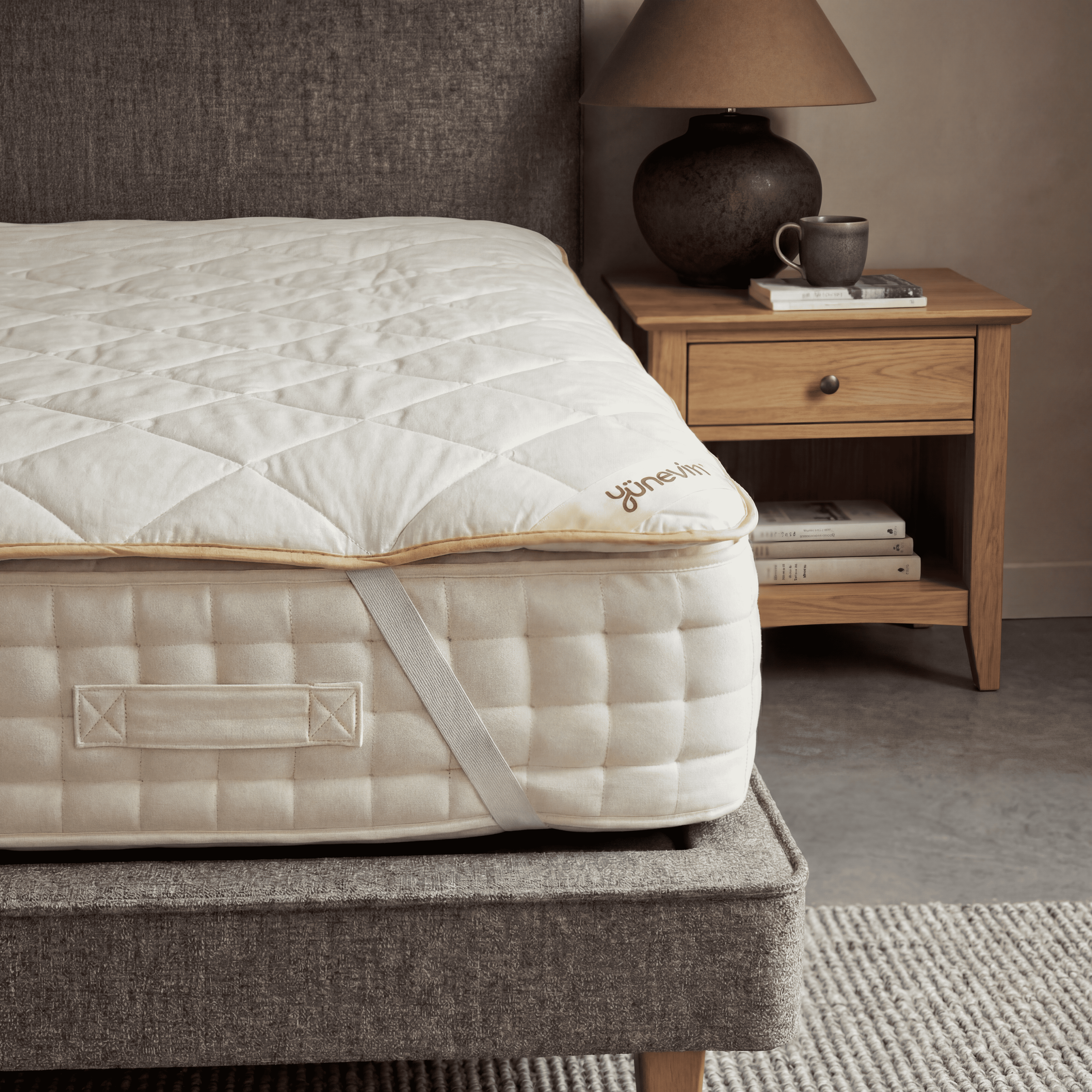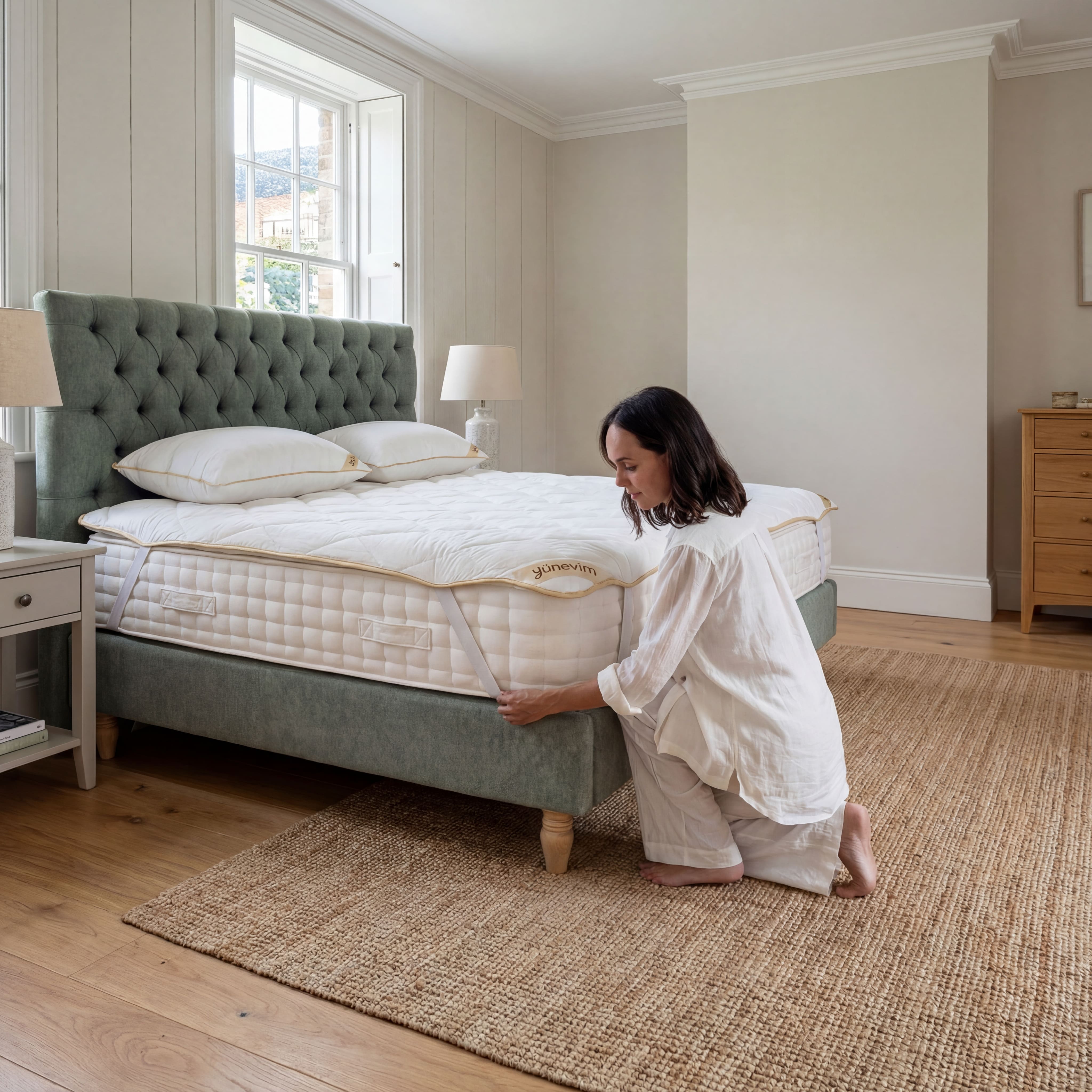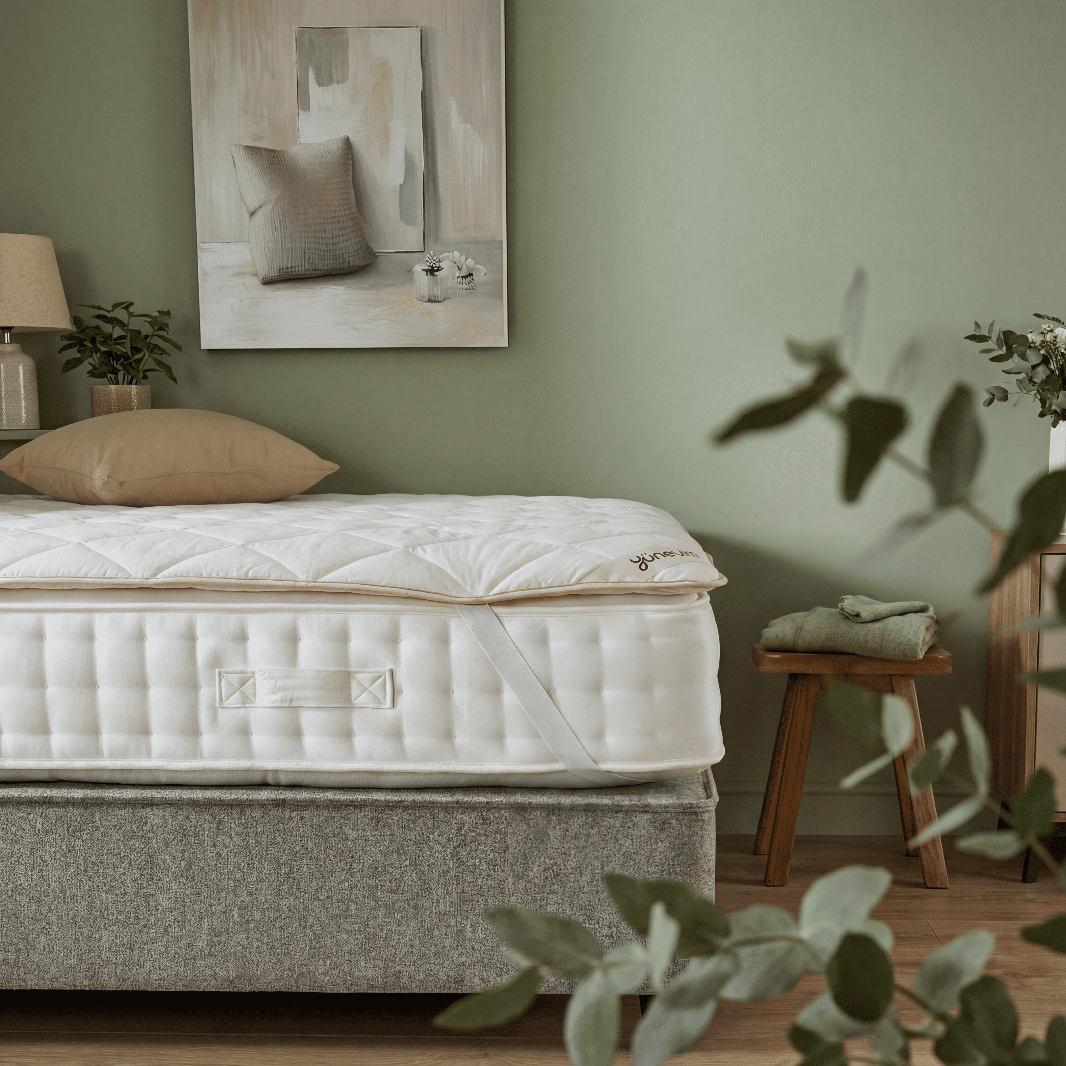 Tamemen kuzu yününden hazırlanmış olup dış kumaşı %100 pamuklu kumaştır yaz kış kullanılabilir. Kesinlikle terletmez sırt ve boyun ağrıları için faydalıdır. Tamemen el dikişidir. Doğal bir uyku deneyimi için tasarlanmıştır.